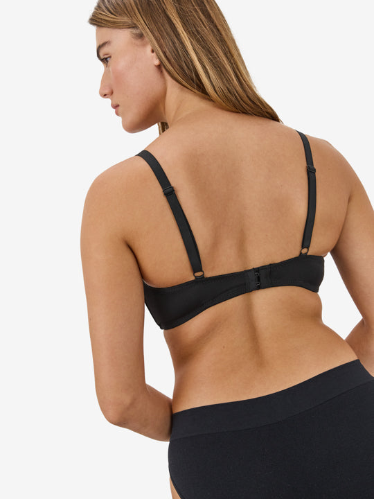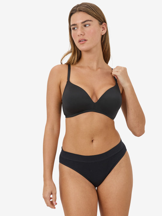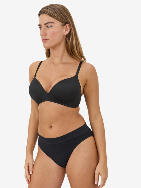 הכירי את החזייה החדשה שלך לנוחות יומיומית. חזיית היילי עשויה ממיקרופייבר חלק עם ריפוד קל וללא ברזלים. הקאפ מספק כיסוי אבל גם מחשוף עמוק לצורה מחמיאה. בנקודת החיבור בין היקף החזייה לקאפים יש עצם גמישה המעניקה תמיכה נוספת ועוזרת להחזיק את החזה במקומו.